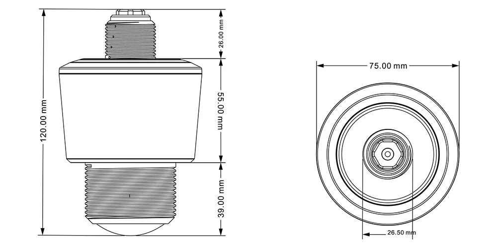 - Dimensions (L × W × H) 75 × 75 × 120 mm